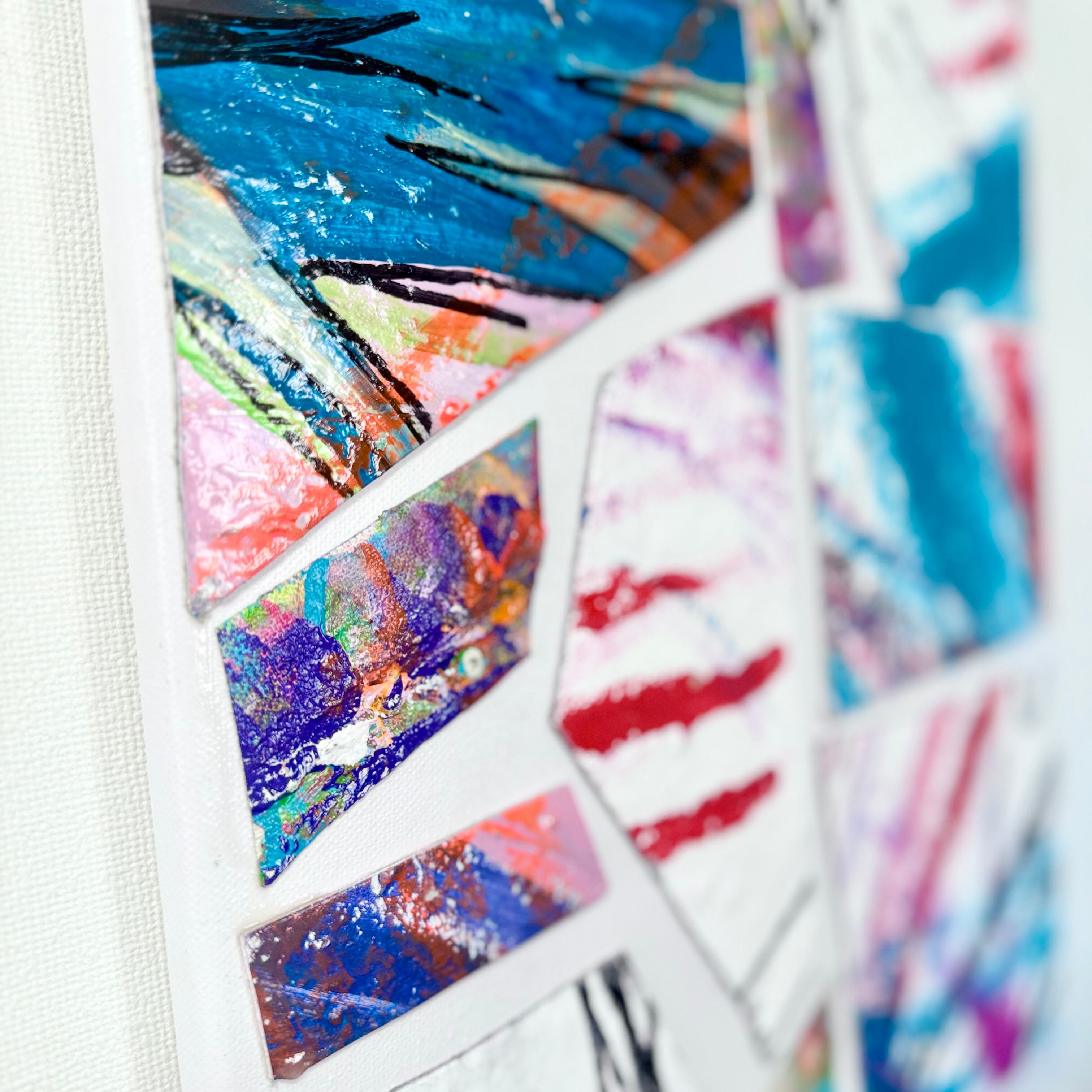 F50サイズのキャンバス2枚を切り裂いたものを、現代アート風のコラージュにした作品です。