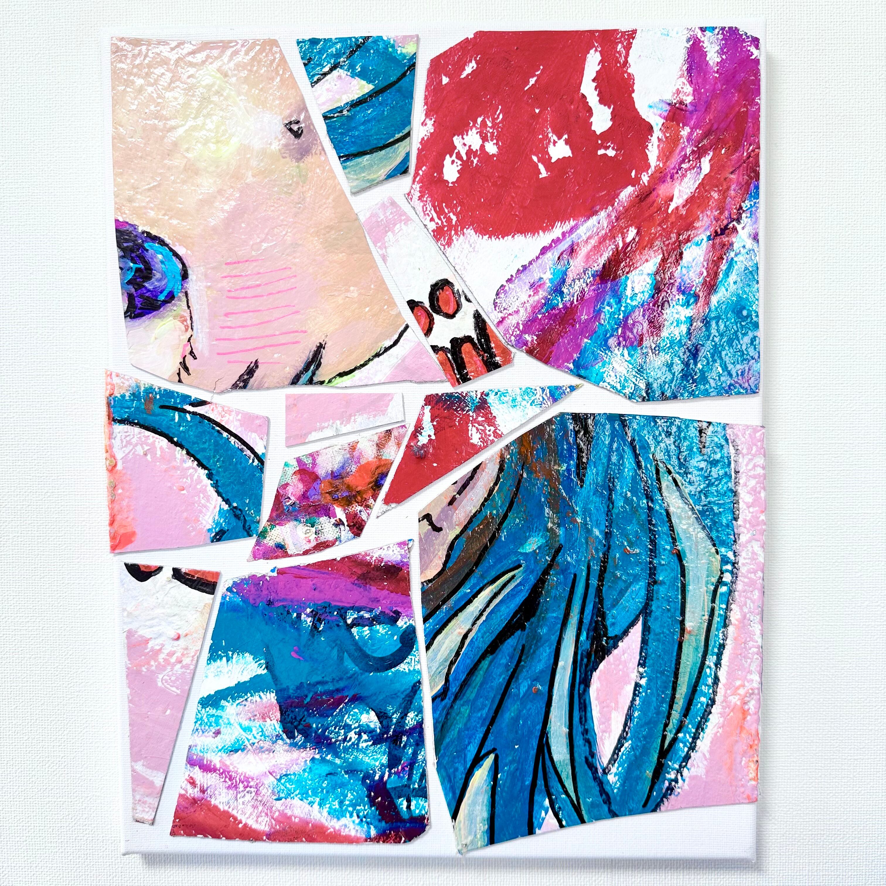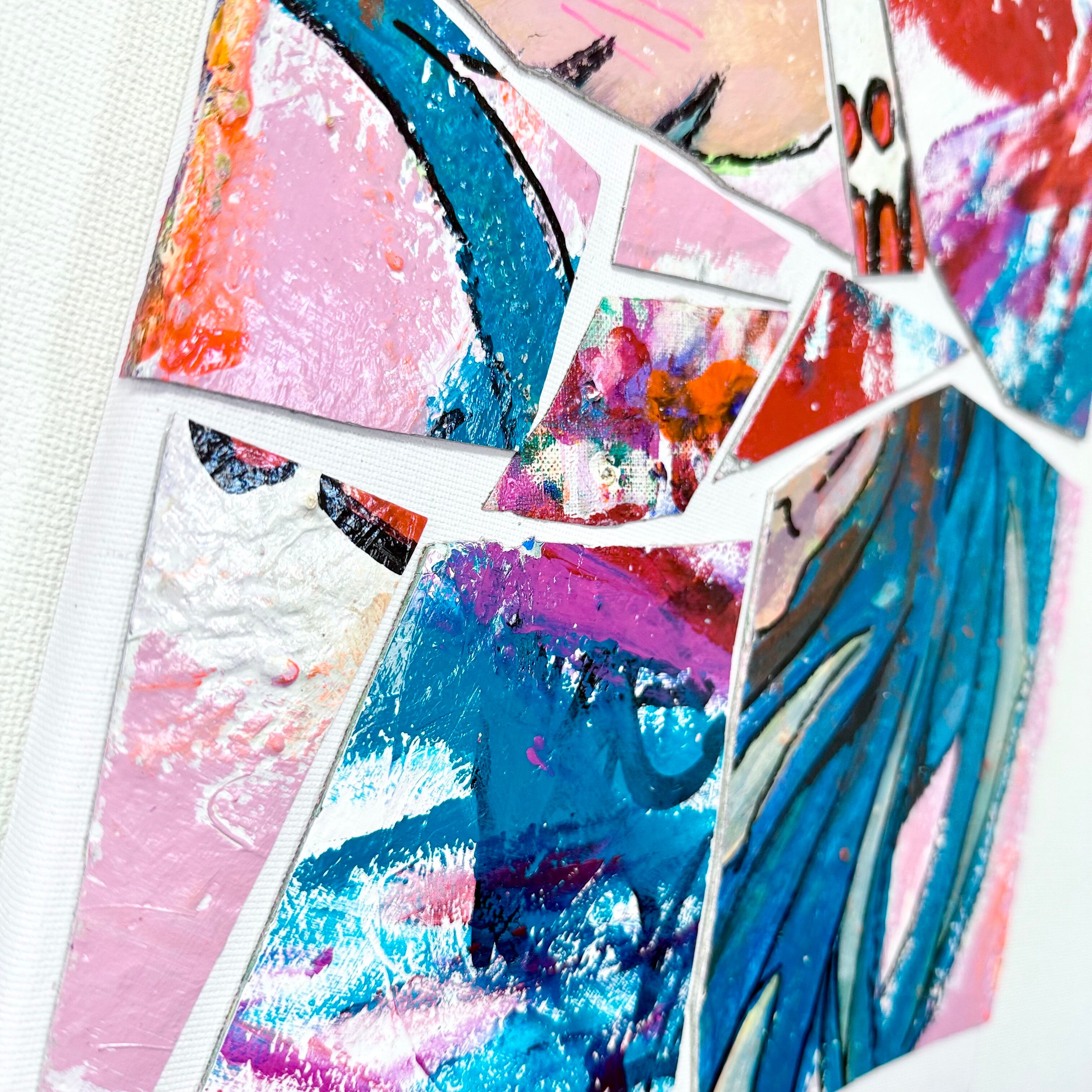F50サイズのキャンバス2枚を切り裂いたものを、現代アート風のコラージュにした作品です。