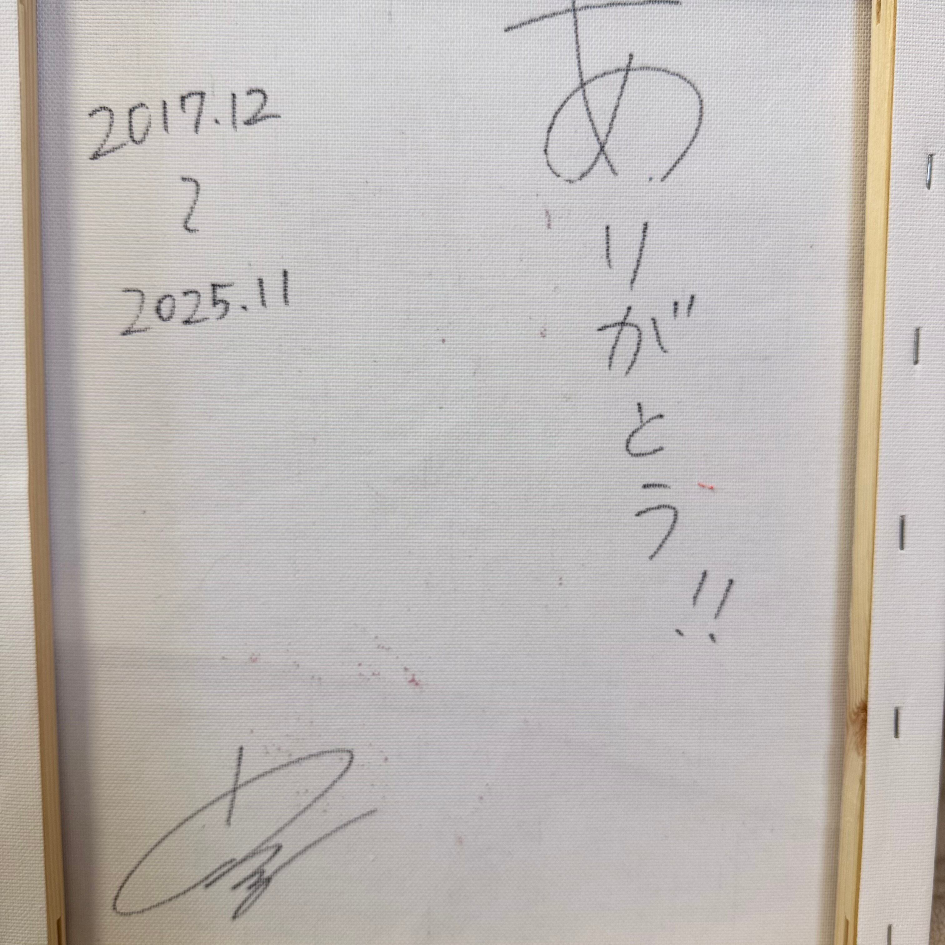 キャンバス裏にはメッセージと活動期間の日付、サイン入りです。