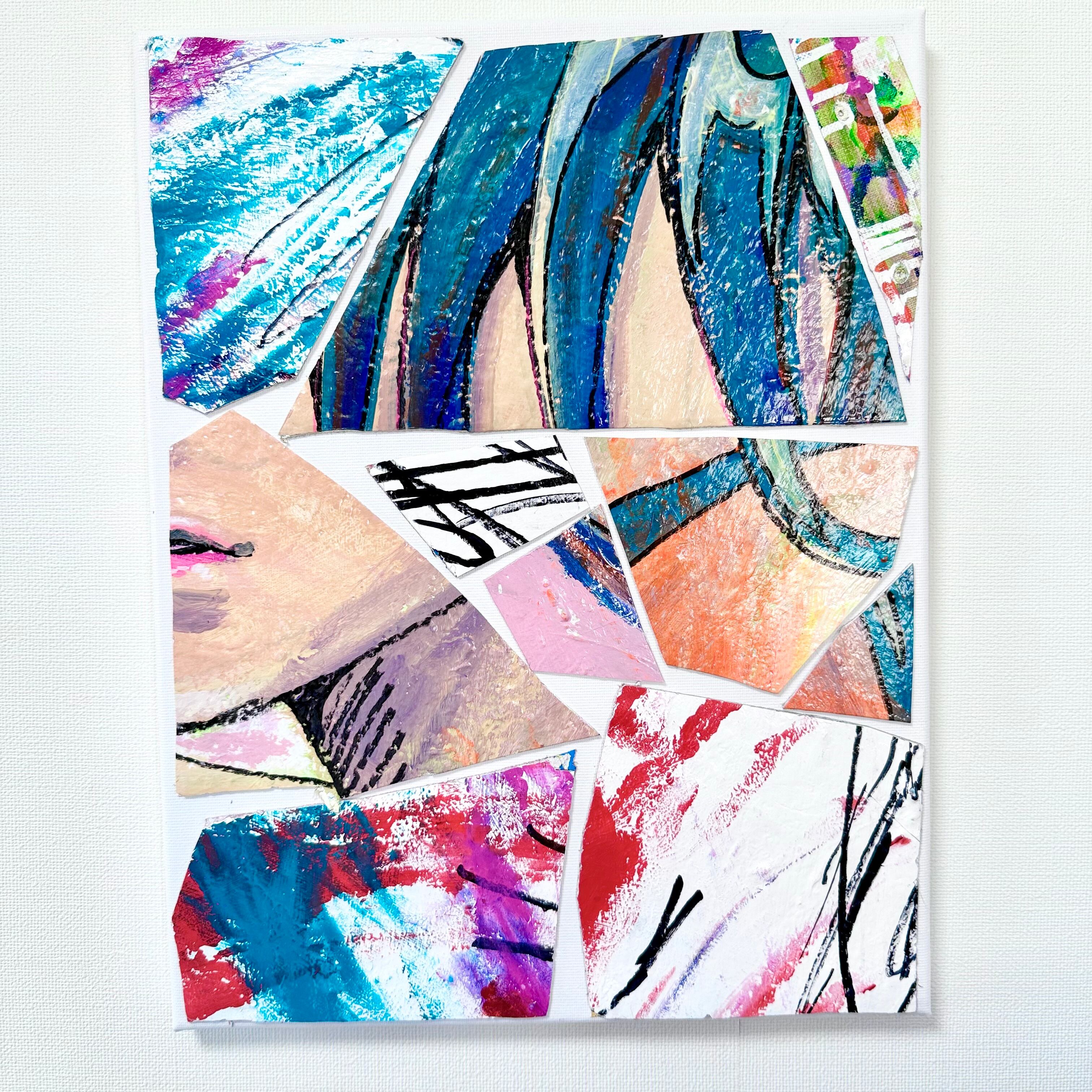 F50サイズのキャンバス2枚を切り裂いたものを、現代アート風のコラージュにした作品です。